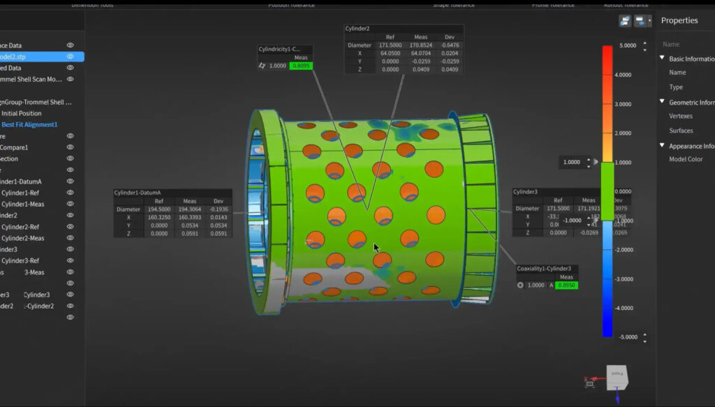 取得したスキャンデータを元のCADモデルと直接照合することで、エンジニアは許容誤差を超えた摩耗や歪みを瞬時に特定。改修が必要な箇所を的確に把握できるようになりました。